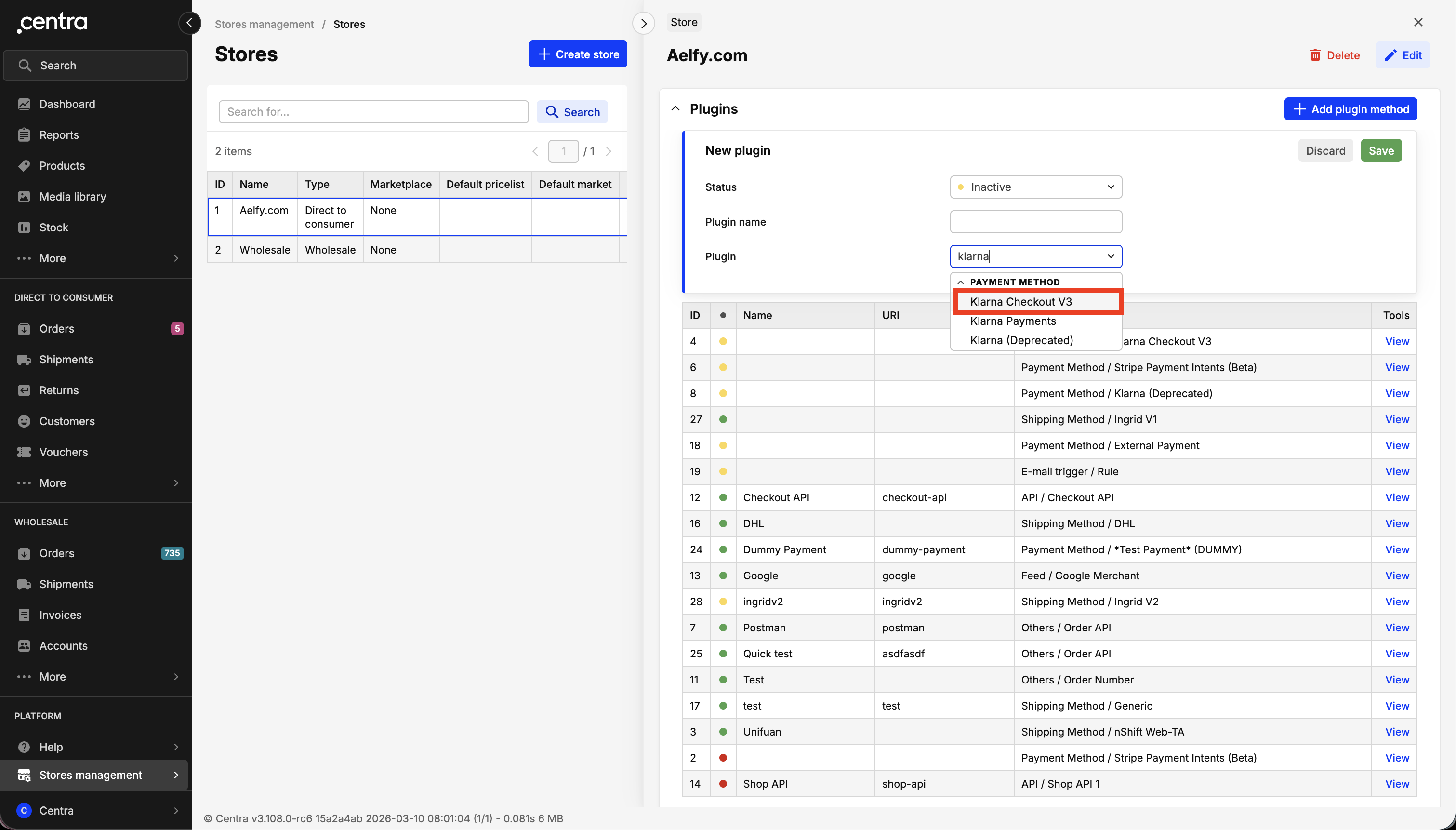 - Select Klarna Checkout V3 from the plugin list.