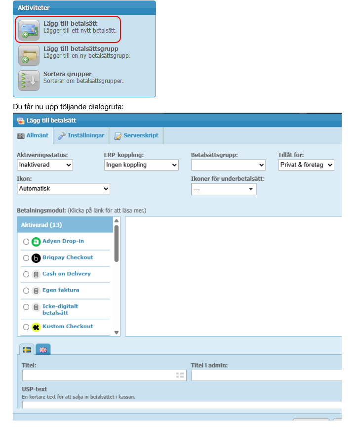 If available, select an ERP-koppling to receive enriched order data in your ERP. Otherwise, leave it as Ingen koppling.