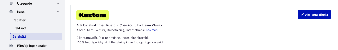 - Go to Kassa → Betalsätt.